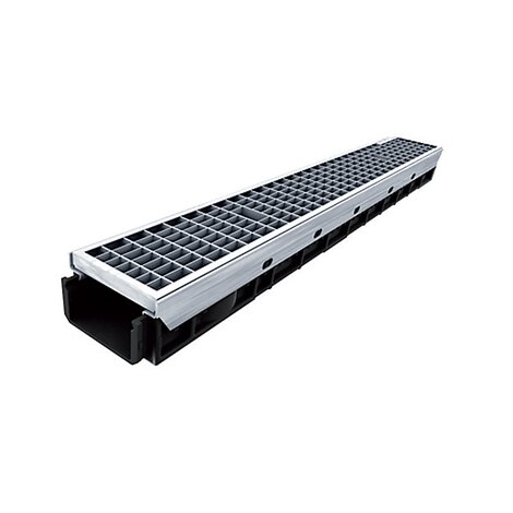 Canal de 1 m con protección de acero galvanizado con 1 rejilla enrejada de acero galvanizado. 1 tornillo de anclaje por rejilla.